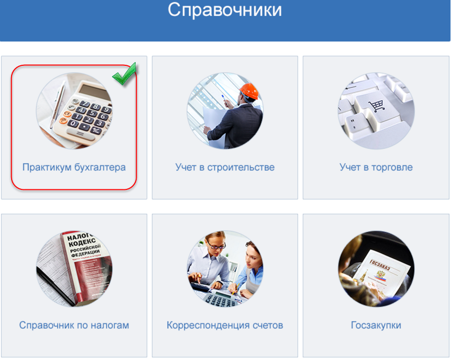 Кроме того, в системах «Помощник Бухгалтера» находится «Практикум Бухгалтера» — сборник справочных материалов по всем вопросам ведения бухгалтерского и налогового учета организации любого профиля и размера. Найти вы его сможете в блоке «Справочники» на главной странице системы.