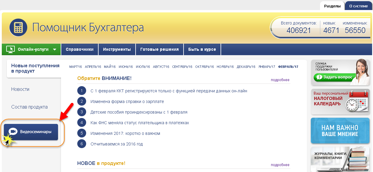 Сервис «Видеосеминары» -дополнительная возможность для специалиста сориентироваться во всех изменениях законодательства.