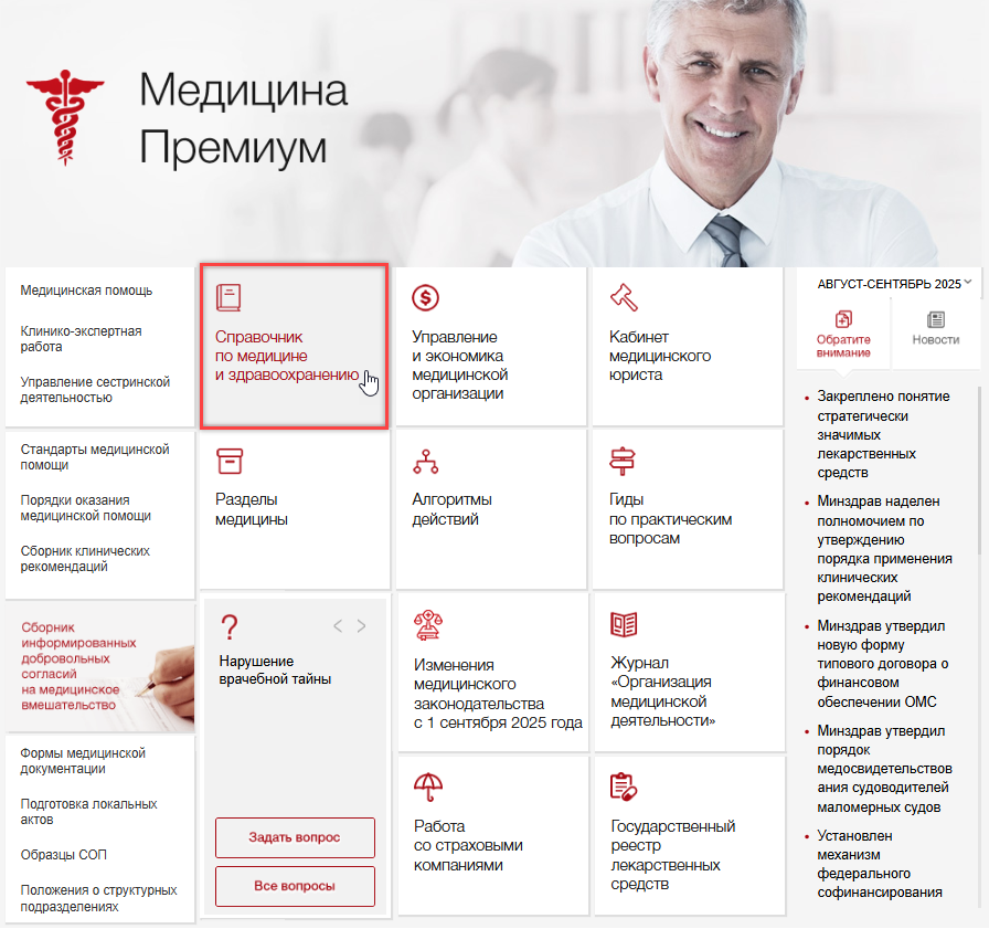 Больше информации и справочных материалов вы найдете в системах «Медицина. Премиум» и «Медицина и здравоохранение»